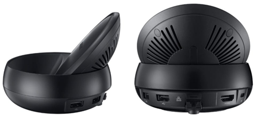 Premisa este simplă: Samsung DeX Station este o bucată de plastic mică, de forma unui puck, care atunci când este deschisă devine un dock pentru Galaxy S8 sau S8+.