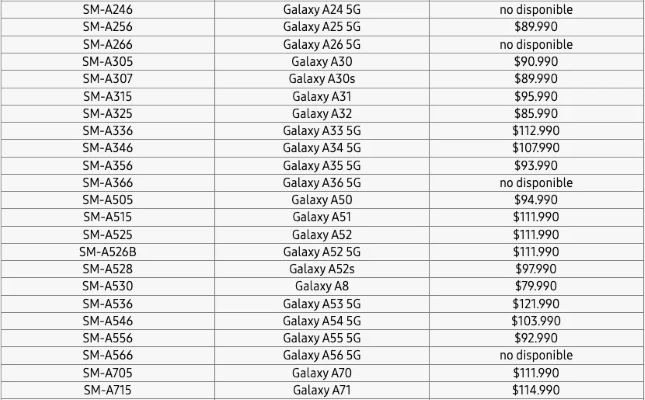 Samsung Galaxy A56 va avea numărul de model SM-A566, Galaxy A36 va avea numărul de mode SM-A366, iar Galaxy A26 numărul de model SM-A266. Site-ul chilian al Samsung a enumerat dispozitivele pe pagina sa de asistență pentru reparații în afara garanției, potrivit AndroidHeadlines. Din păcate, apariția pe site-ul Samsung nu include detalii cu privire la specificațiile viitoarelor dispozitive din seria Galaxy A.