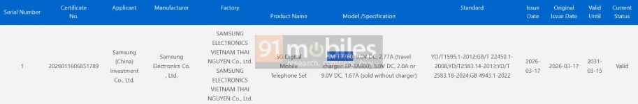 3C încadrează numărul de model SM-F7760 „telefon mobil digital 5G”. Mai mult, afirmă că va suporta aceleași viteze de încărcare ca și predecesorul său. Numărul de model al încărcătorului EP-TA800 menționat de 3C aparține unui încărcător cu fir Samsung de 25W. Asta este tot ce dezvăluie lista. Cu toate acestea, alte informații că smartphone-ul ar putea debuta cu aceeași capacitate a bateriei ca și predecesorul său Flip 7.