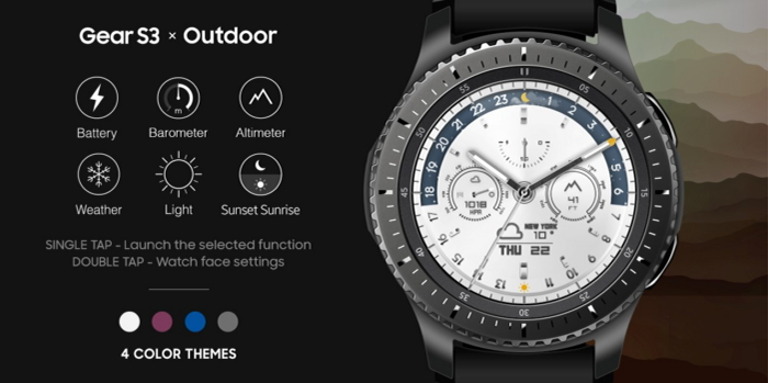 Noul Samsung Outdoor Watchface prezintă o selecție de funcții Gear S3, care pot ajuta utilizatorii atunci când aceștea se bucură de vremea bună de afară, când pleacă într-o excursie sau pur și simplu când merg la o plimbare pe jos.