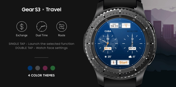 Samsung Travel Watchface combină o serie de funcții utile Gear S3, care pot ajuta în călătorii de afaceri sau turistice pentru a gestiona mai bine călătoriile.