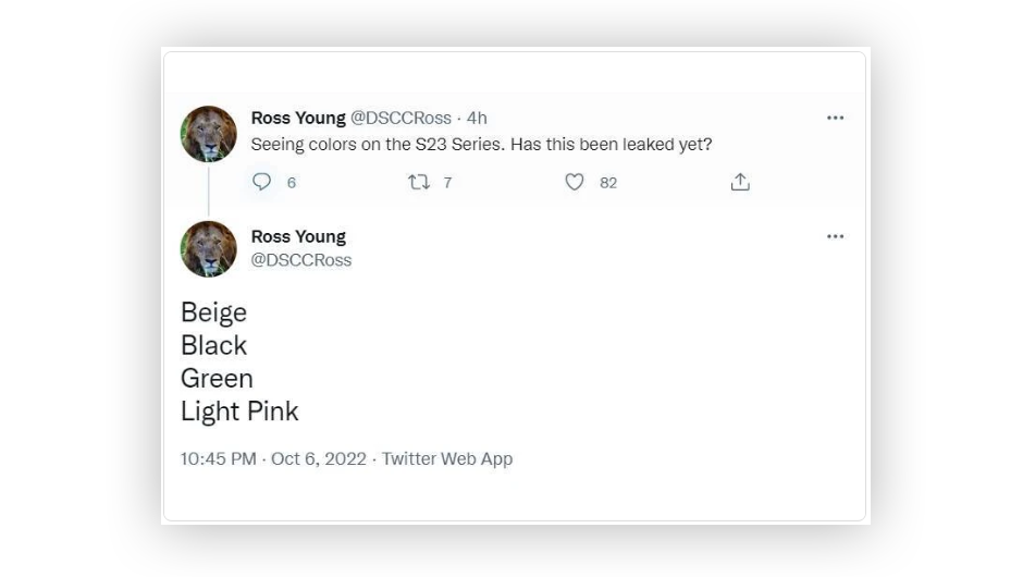 Din ce vedem, seria Galaxy S23 are momentan o paletă de culori extrem de limitată. Aparent, acestea vor fi singurele opțiuni pentru toate modelele. În schimb, seria Galaxy S22 a venit într-o varietate de culori. De exemplu Phantom White, Phantom Black, Green, Graphite, Gold, Cream și Red, pentru a numi doar câteva. Așadar, deși se pare că avem două nuanțe noi de așteptat (bej și roz deschis), paleta limitată poate dezamăgi unii utilizatori.