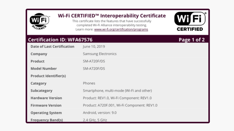 Certificările de la Wi-FI Alliance sunt în mod normal un serios indiciu al unor actualizări iminente. De obicei, acestea se afișează cu câteva săptămâni înainte ca actualizarea însăși să fie extinsă. Acest lucru ar trebui, cel puțin în teorie, să însemne că numărul de model SM-A720F care este de fapt al smartphone-ului Galaxy A7 (2017) va primi Android 9 Pie în curând.