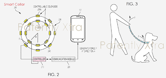 Samsung a depus o cerere și primit un brevet de la USPTO pentru un sistem „Virtual Leash” o lesă virtuală care include un guler inteligent. Proprietarii de animale de companie vor putea să controleze cât de departe și cât de mult alergă câinele în timpul unei plimbări, prin utilizarea smartphone-ului Galaxy în comunicarea fără fir cu gulerul inteligent purtat de câinele lor preferat. Cu atât de mulți iubitori de câini din lume, aceasta ar putea fi un dispozitiv de mare succes pentru compania Samsung.
