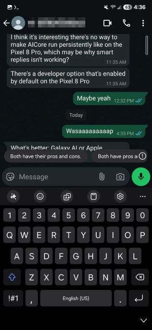 La lansarea seriei Galaxy S25, Samsung a subliniat mai multe funcții AI disponibile pe cele trei telefoane. Cu toate acestea, sunt mai multe funcții AI despre care Samsung nu a spus nimic. Una dintre acestea se numește „răspunsuri sugerate”. Suggested replies folosește modele AI pe dispozitiv pentru a găsi răspunsuri potențiale la mesajele pe care le primiți în WhatsApp. Această funcție este oferită de aplicația Samsung Keyboard și este similară cu Gboard Smart Reply pe telefoanele Pixel. Potrivit AndroidAuthority, mai mulți utilizatori au observat că această caracteristică funcționează doar cu WhatsApp.