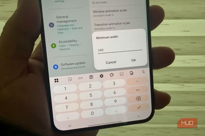 Apoi, accesați Opțiuni pentru dezvoltatori, derulați în jos până la Lățime minimă -> schimbați valoarea la 550 sau 600. Interfața dvs. va comuta la o vizualizare cu densitate mai mare, care, în anumite aplicații, permite o vizualizare pe mai multe coloane.