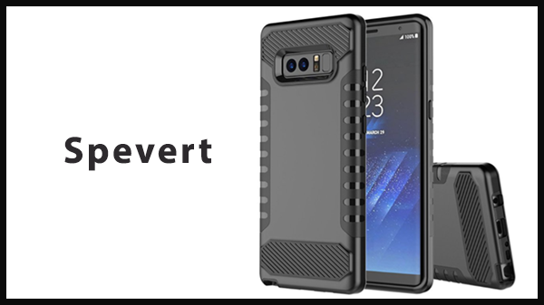 Husele cu strat dublu oferă cea mai bună protecție, fără a adăuga prea multe costuri. Spevert are o husă frumoasă pentru Note 8, inspirată din Spigen Rugged Armor. Folosind un TPU moale în interior, o carcasă din policarbonat tare pe exterior și accente de fibre de carbon faux pentru un aspect frumos.